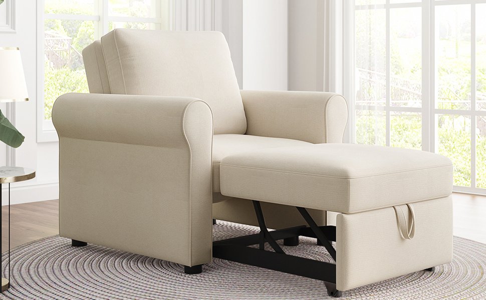 COMFORTABLE EXPERIENCE: The sofa bed chair breathable linen fabric and high density sponge with stereo lines, full and comfortable,helps you release the whole body from head to feet, Not only does it durable, but it can easily withstand 440lbs.