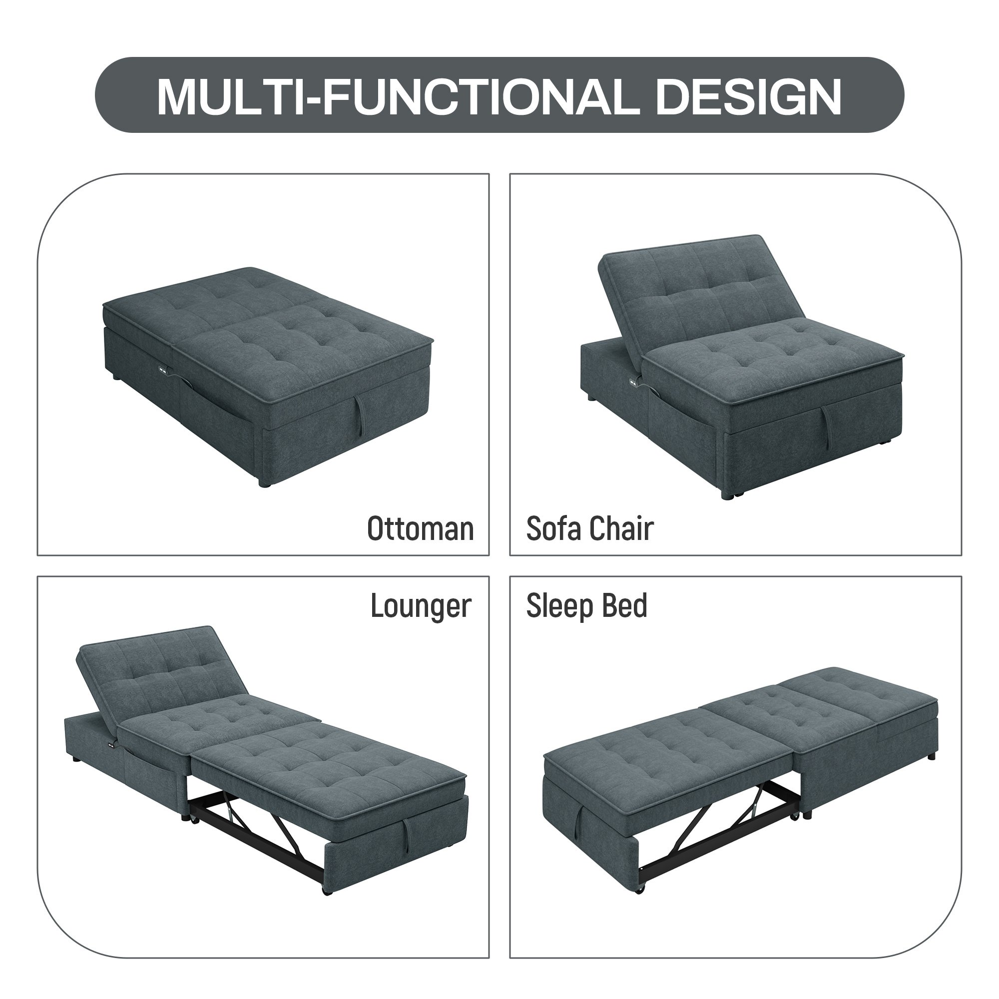 4-in-1 Sofa Bed, Chair Bed, Multi-Function Folding Ottoman Bed with Storage Pocket and USB Port for Small Room Apartment,Living Room,Bedroom,Hallway,