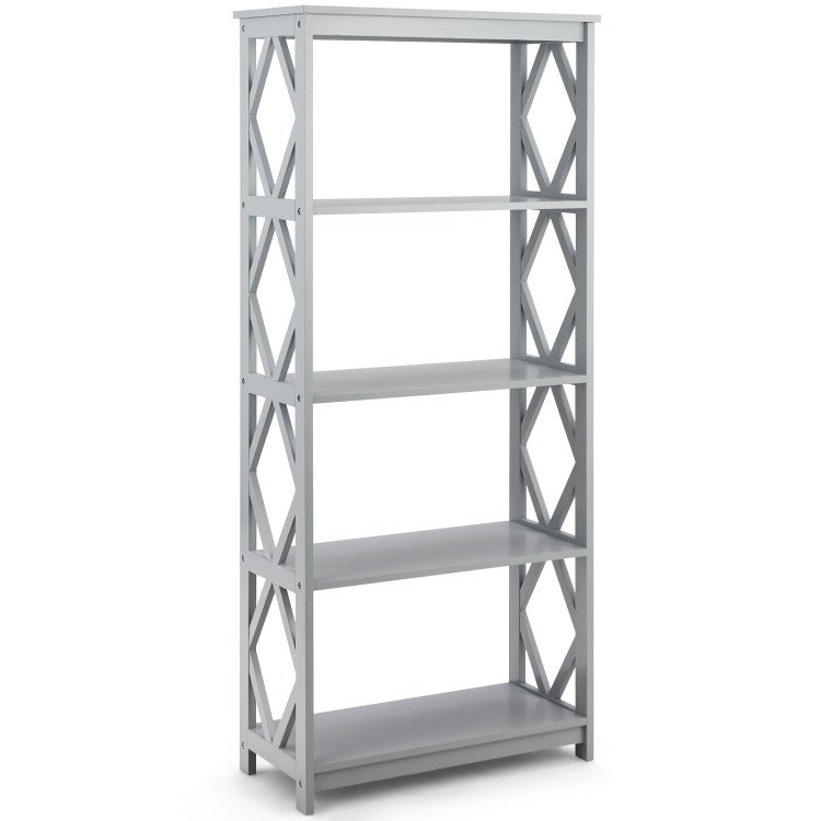 ● Pleasing to the Eye: Featuring simple gray/white color and elegant rhombus patterns, this 5-tier bookshelf makes a modern addition to blend seamlessly with your home decoration.