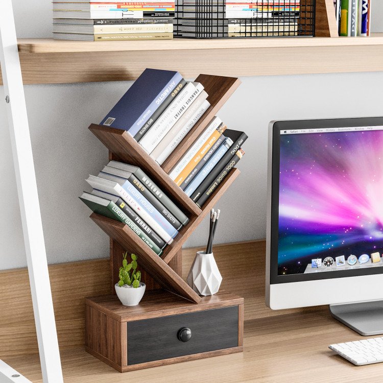 5-Tier Floor Standing Tree Bookcase with Drawer