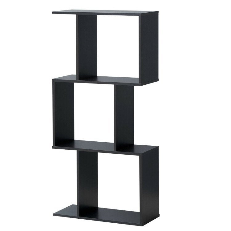 Home > 2/3/4 Tiers Wooden S-Shaped Bookcase for Living Room Bedroom Office