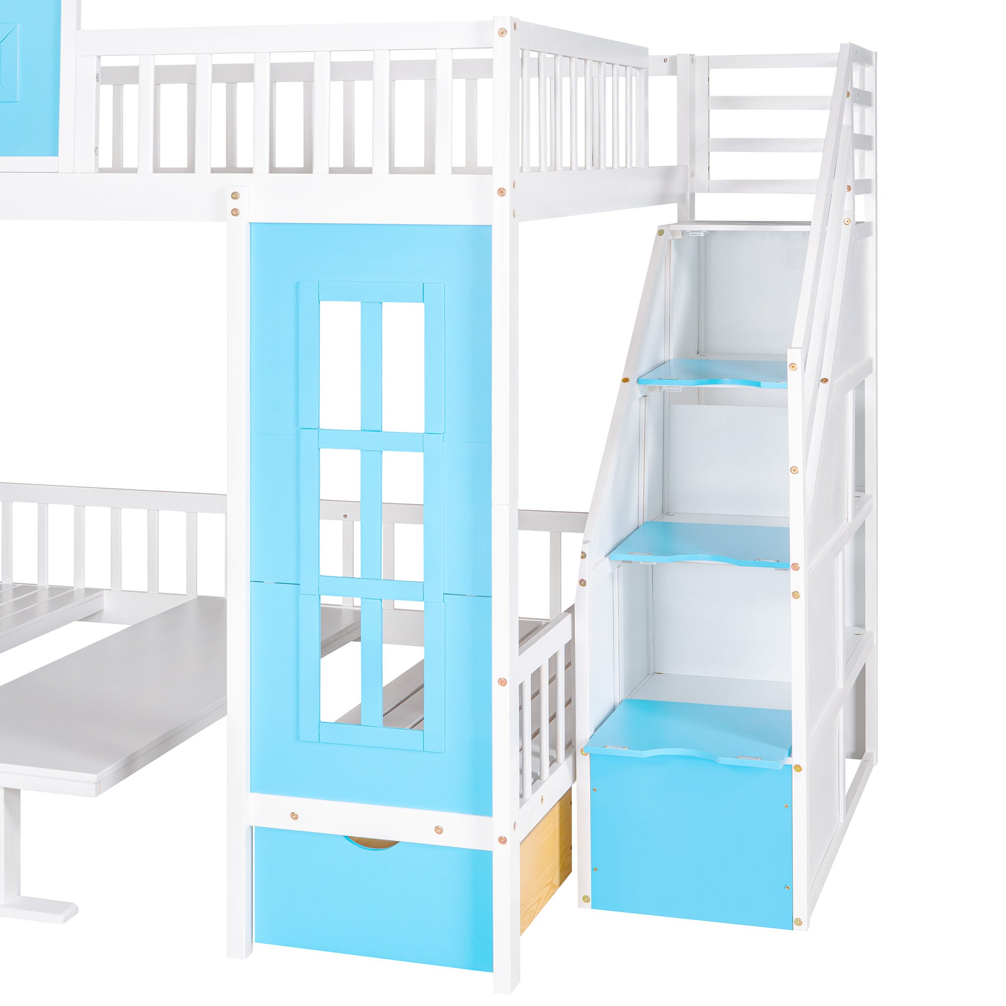 Home > Full-Over-Full Bunk Bed with Changeable Table ; Bunk Bed Turn into Upper Bed and Down Desk - Blue