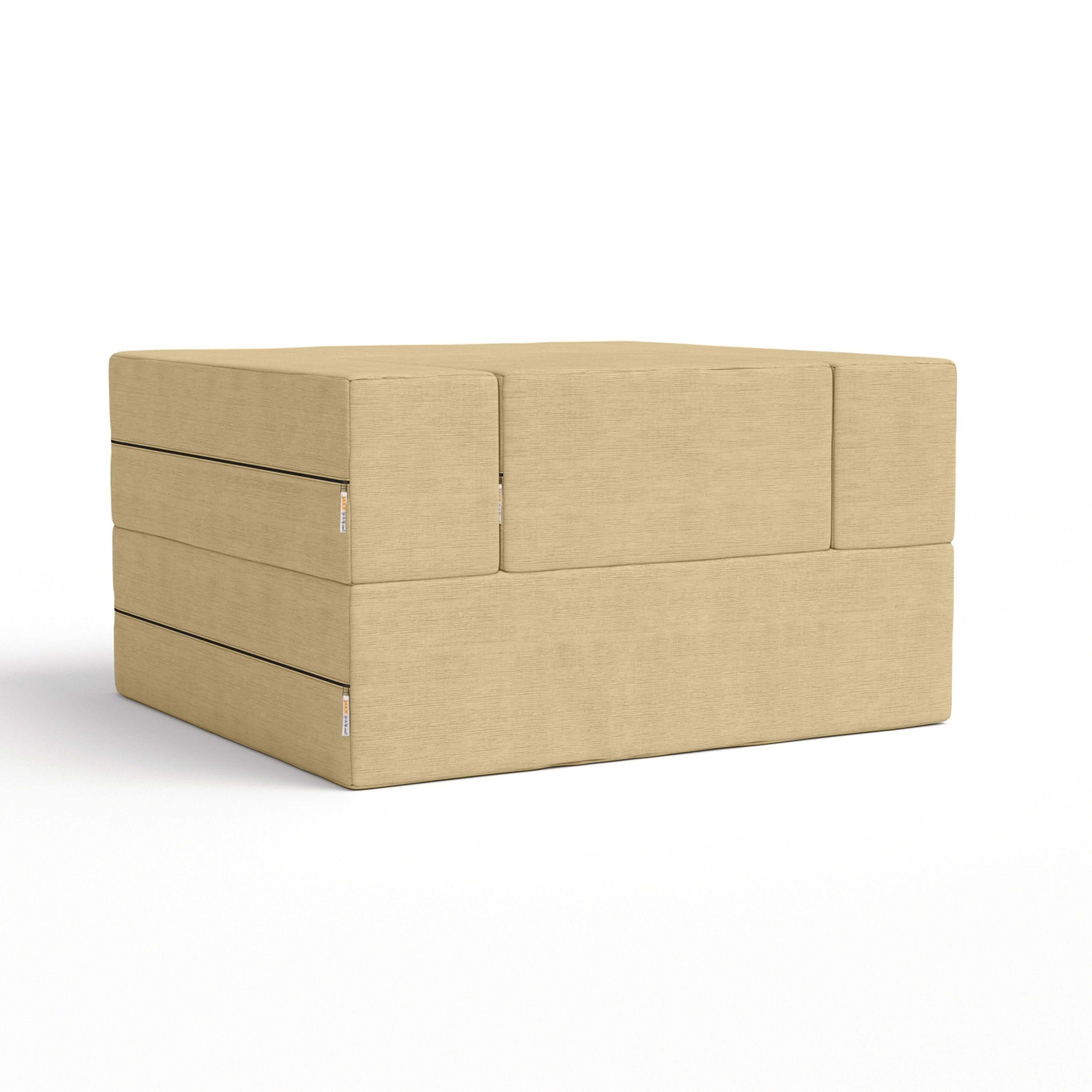 A chair as clever as it is stylish; the Zipline Convertible Sleeper Chair with Ottoman is a fun and functional centerpiece for any room. With its 3-tiered multifunctional design, it creates the perfect layout for your space with the ability to customize quickly and easily. Lounge in its chair form and use the accompanying ottoman to put your feet up. Or, stack the ottoman inside the chair to play cards or use it as a spacious barstool. Even better, fold it out completely and get some sleep on the twin-size mattress. The soft and durable covers are both removable and machine-washable. Care Instructions for Cover: machine-wash with cold water, tumble-dry on low heat.