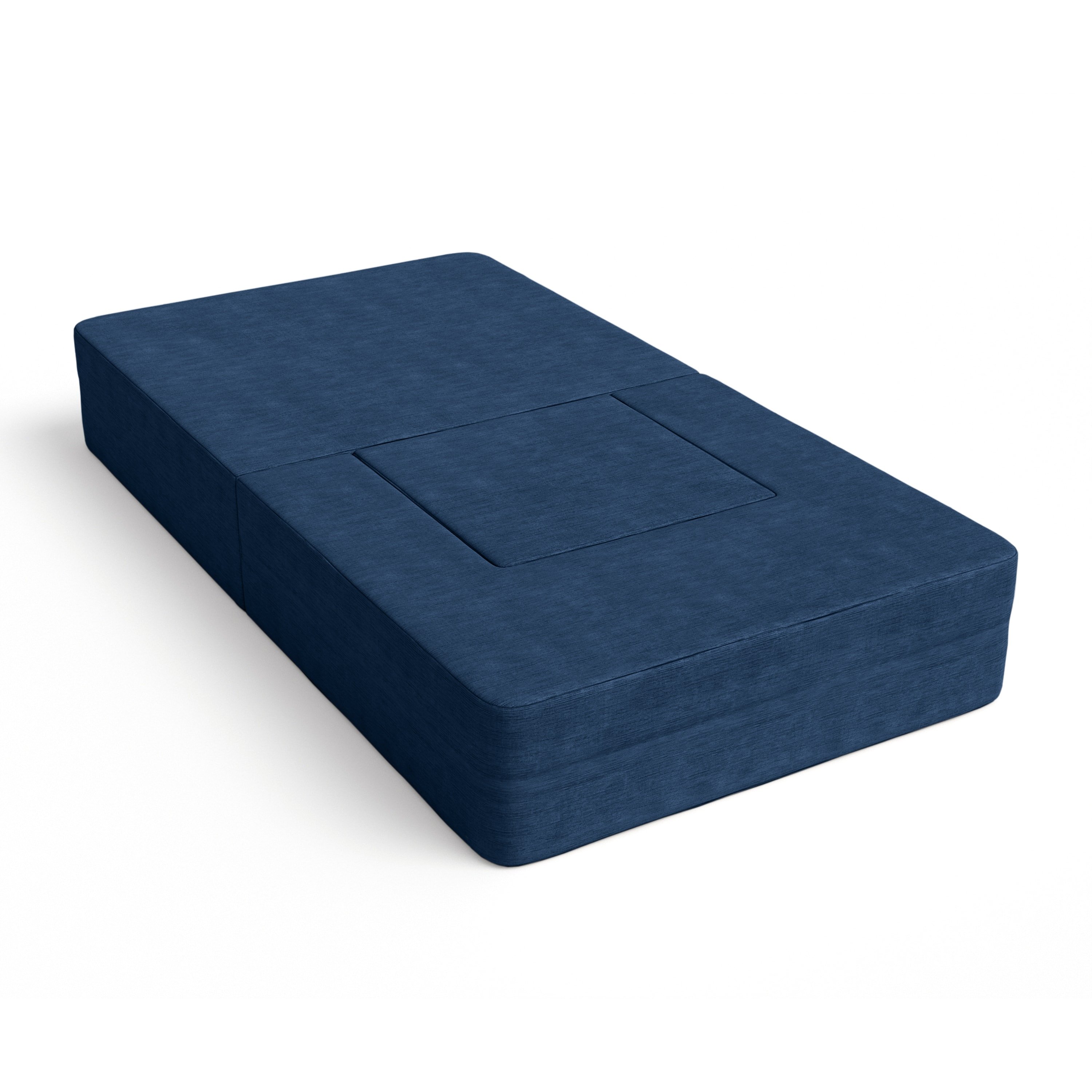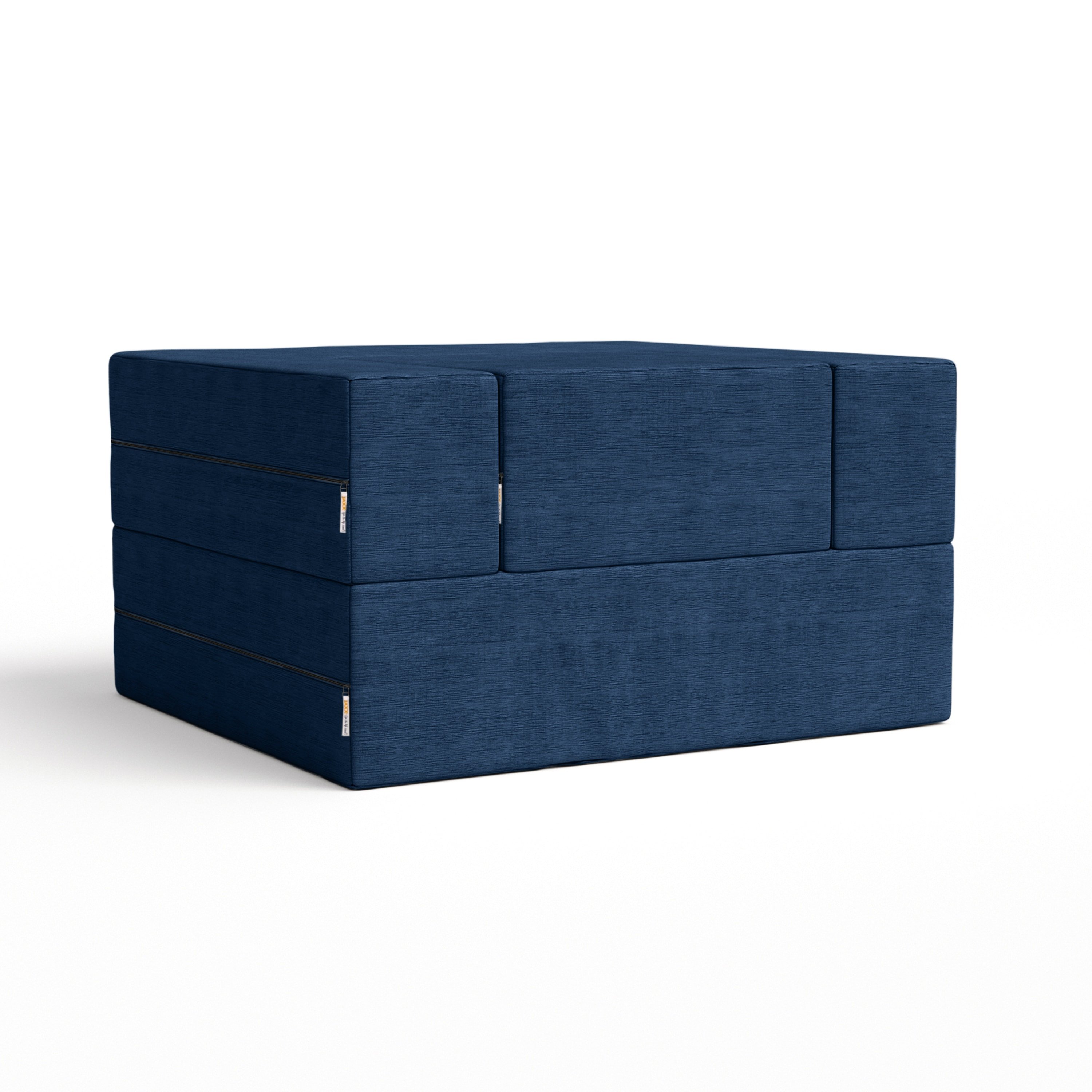 A chair as clever as it is stylish; the Zipline Convertible Sleeper Chair with Ottoman is a fun and functional centerpiece for any room. With its 3-tiered multifunctional design, it creates the perfect layout for your space with the ability to customize quickly and easily. Lounge in its chair form and use the accompanying ottoman to put your feet up. Or, stack the ottoman inside the chair to play cards or use it as a spacious barstool. Even better, fold it out completely and get some sleep on the twin-size mattress. The soft and durable covers are both removable and machine-washable. Care Instructions for Cover: machine-wash with cold water, tumble-dry on low heat.