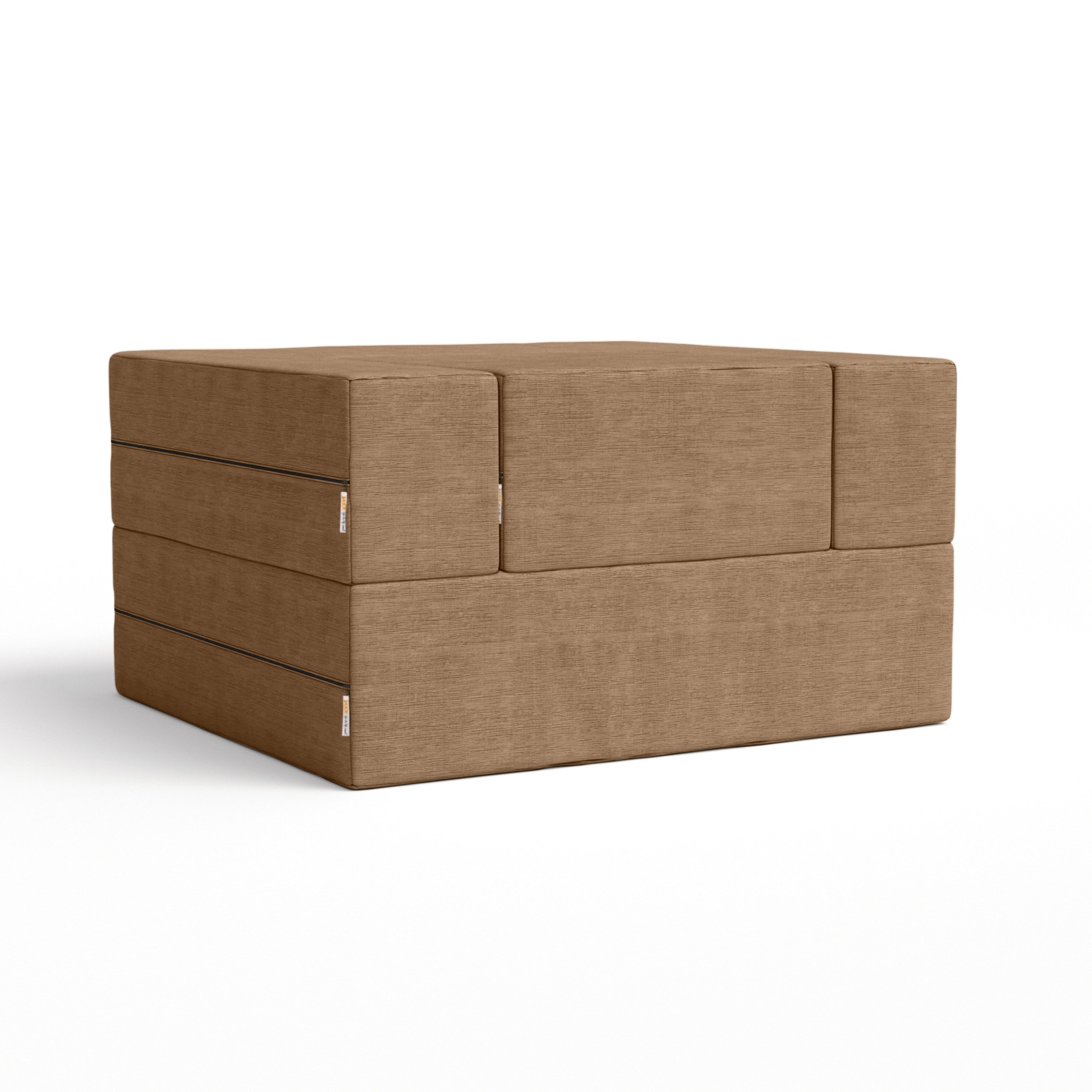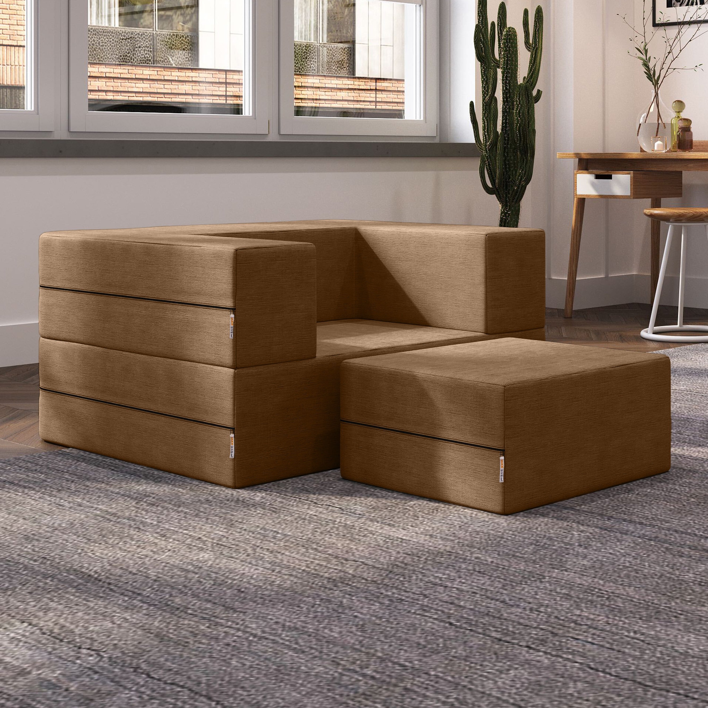 A chair as clever as it is stylish; the Zipline Convertible Sleeper Chair with Ottoman is a fun and functional centerpiece for any room. With its 3-tiered multifunctional design, it creates the perfect layout for your space with the ability to customize quickly and easily. Lounge in its chair form and use the accompanying ottoman to put your feet up. Or, stack the ottoman inside the chair to play cards or use it as a spacious barstool. Even better, fold it out completely and get some sleep on the twin-size mattress. The soft and durable covers are both removable and machine-washable. Care Instructions for Cover: machine-wash with cold water, tumble-dry on low heat.