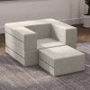 A chair as clever as it is stylish; the Zipline Convertible Sleeper Chair with Ottoman is a fun and functional centerpiece for any room. With its 3-tiered multifunctional design, it creates the perfect layout for your space with the ability to customize quickly and easily. Lounge in its chair form and use the accompanying ottoman to put your feet up. Or, stack the ottoman inside the chair to play cards or use it as a spacious barstool. Even better, fold it out completely and get some sleep on the twin-size mattress. The soft and durable covers are both removable and machine-washable. Care Instructions for Cover: machine-wash with cold water, tumble-dry on low heat.