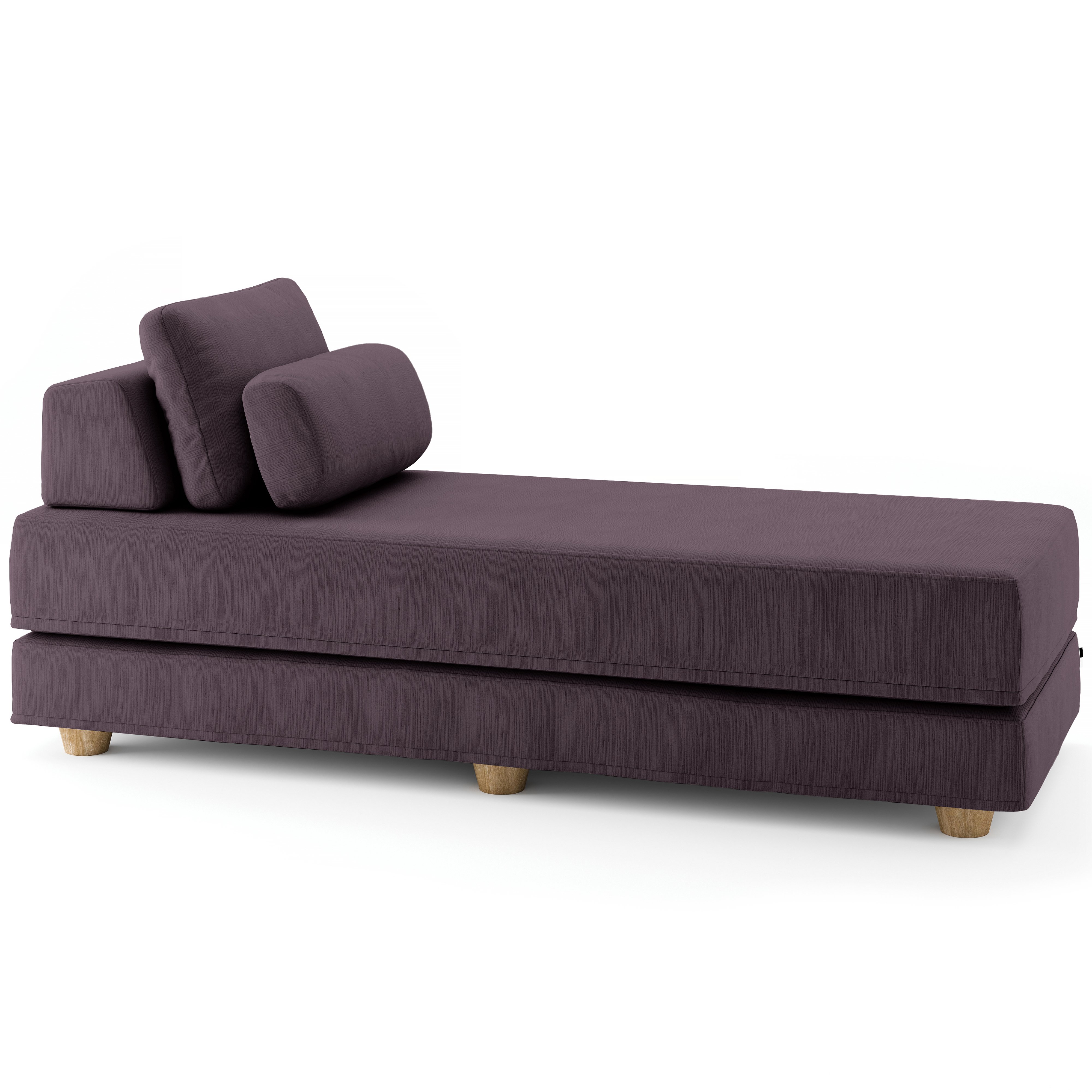 With a modern aesthetic and plush feel, the Balshan Chaise Lounge Daybed puts pull-out couches to shame. This minimalist, convertible lounger consists of five pieces: a cushioned base atop a wooden platform and maple feet, a second cushion stacked on top, a backrest, a pillow, and a bolster. These pieces can be arranged as a cozy seat or bed, and the backrest supports the back, head, or arms. Two extra pillows are included for decoration and even more comfort. The Balshan Chaise Lounge Daybed can be anything you want it to be. When pulled apart, the base and top cushion transform into a queen-size bed for overnight guests. The backrest stays in place thanks to its weighted base and skid-free traction underside. With multiple arrangement options, the Balshan is as flexible as your needs.