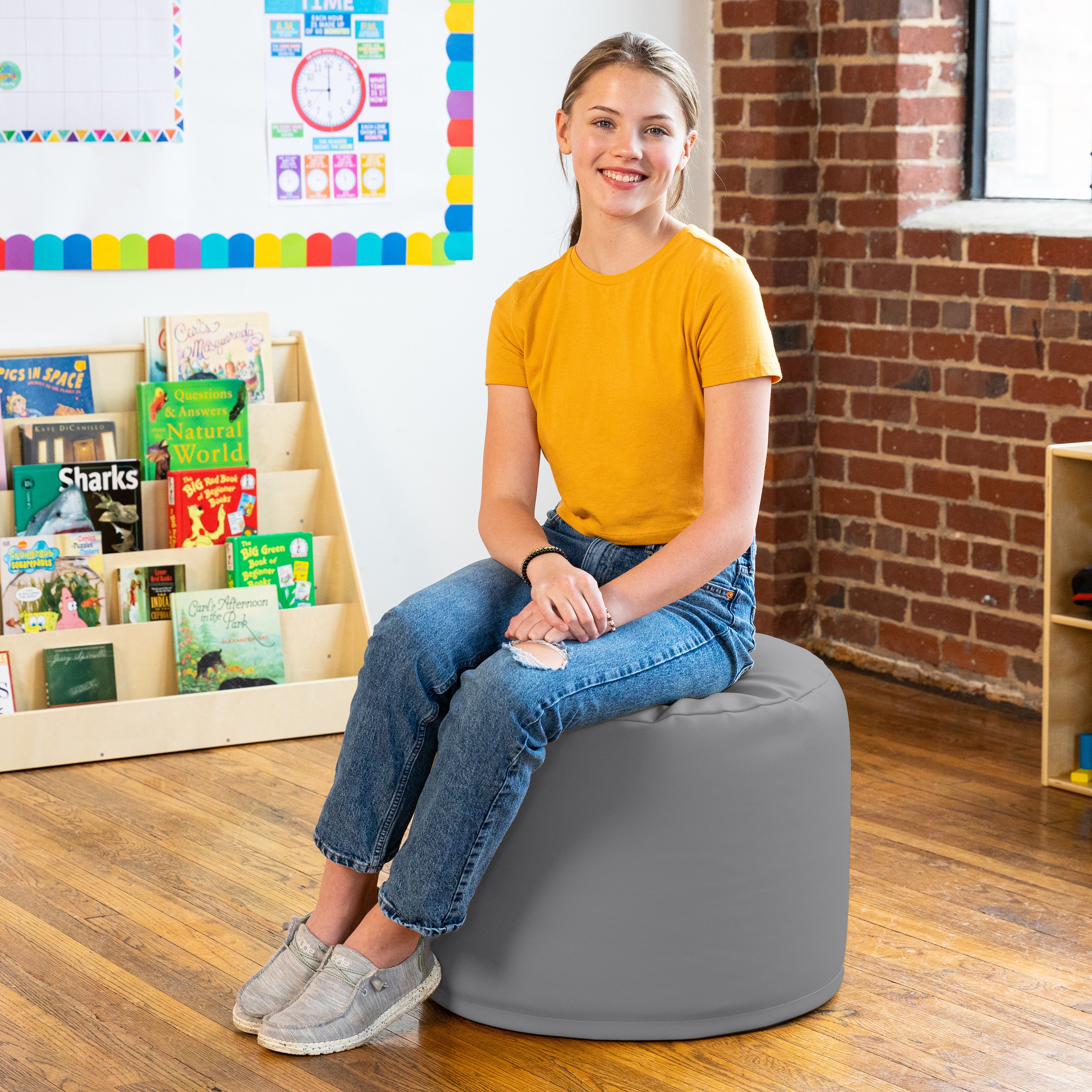 The multifunctional Jaxx Mallo Pouf/Ottoman is a durable and versatile piece for all school environments. It can be used as a traditional ottoman, as well as a pouf / modular seat for students. Its tear-resistant Vinyl cover is extremely durable and made to wipe clean, so spills are no problem. Can also be used as a rugged side table for games, or other school activities. Product dimensions: 21”L x 21”W x 17”H.  NFPA 260 Class 1 Certified, 400,000 double rubs.