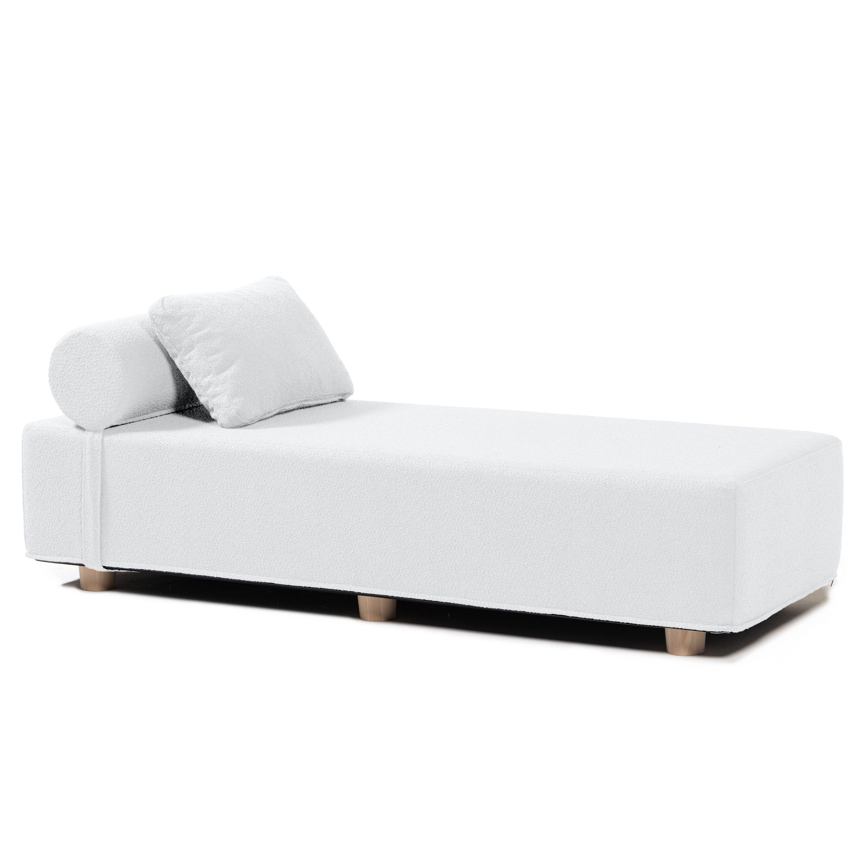 The Jaxx Alvy Chaise Lounge in Premium Boucle with Maple Wood Feet is the ultimate in comfort and style, complete with a large bolster and pillow to enhance your relaxation experience. Crafted with a multilayer furniture grade foam core, the Jaxx Alvy Chaise Lounge provides a great relaxation option for living rooms, offices, study rooms, and more. Whether you're lounging with a book, taking a nap, or simply relaxing, this chaise will help you unwind. The premium Boucle fabric is soft and inviting, while the maple wood feet add a touch of warmth and natural beauty to the design. To enhance your relaxation experience, the Jaxx Alvy Chaise Lounge comes with a large bolster and pillow. The bolster provides extra support for your neck and back, while the pillow adds a touch of style and comfort. Assembled in 5 minutes or less, the Jaxx Alvy Chaise Lounge is a stylish and functional piece of furniture that you'll love for years to come. Whether you're looking to add a cozy reading nook to your living room or a comfortable spot to relax in your bedroom, the Jaxx Alvy Chaise is the perfect choice.