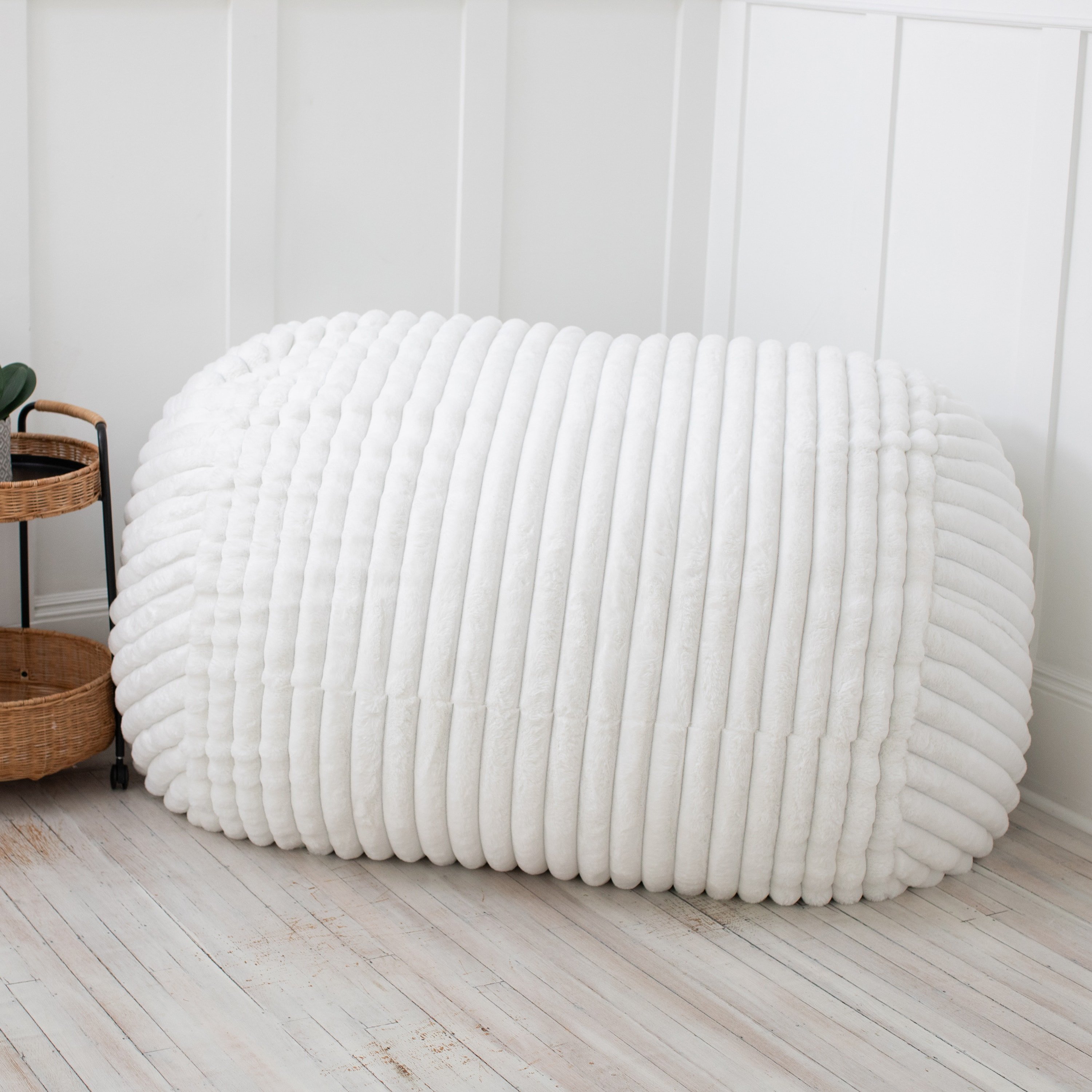 The Jaxx 6 ft Bean Bag Lounger is the cure for the common loveseat. It makes a statement as the centerpiece to a room or nestled into a corner. Not to mention it is heaven to lie back and relax on, with extra space in case you need room for two. Filled with finely shredded polyurethane foam and covered in soft yet durable Mondo Fur, this stylish bean bag conforms to your body in a variety of position. Available in a variety of colors, our Mondo Fur covers are both removable and machine-washable. Each bean bag includes a protective inner-liner with childproof zipper that keeps the filling out of reach when cleaning the cover. To clean the cover, wash with cold water and tumble dry on low heat. Fluff as needed.